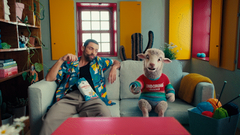 Snacks ad featuring a sheep and an uncontrollable urge to knit